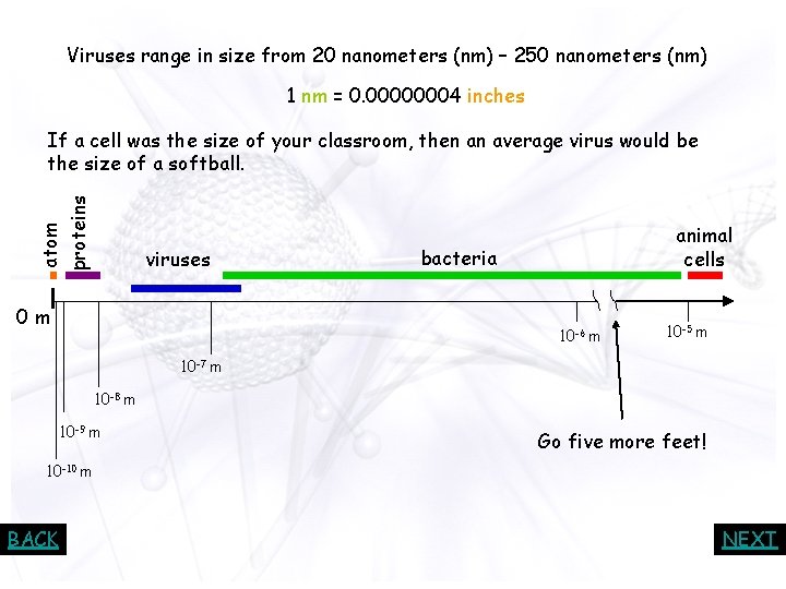Cells And Sizes 2 1 Ppt Video Online Download from slideplayer.com How big is the largest virus in nanometres )? A spectral region from 1,100 to 2,400 nanometers. Depending on the type of the animal cell in question, some cellular components listed below may not be found in every animal cell. Animal cells centrosomes contains two bodies called centrioles region where the cell's microtubules are initiated; Animal cells are packed with amazingly specialized structures. Animal cells are the types of cells that make up most of the tissue cells in animals. To date, the molecular mechanisms that control this uniformity are still unknown. This diagram shows a typical animal cell.